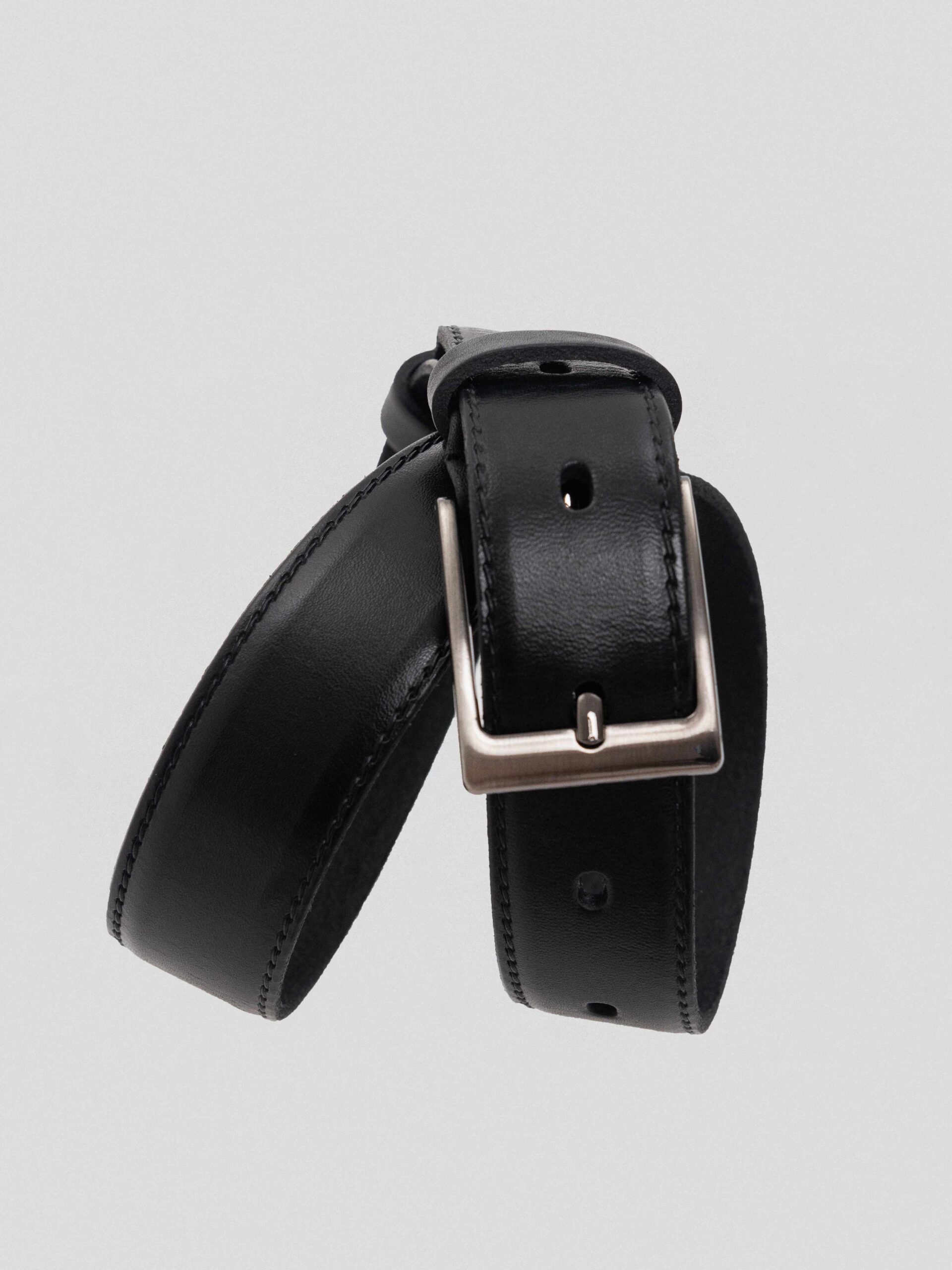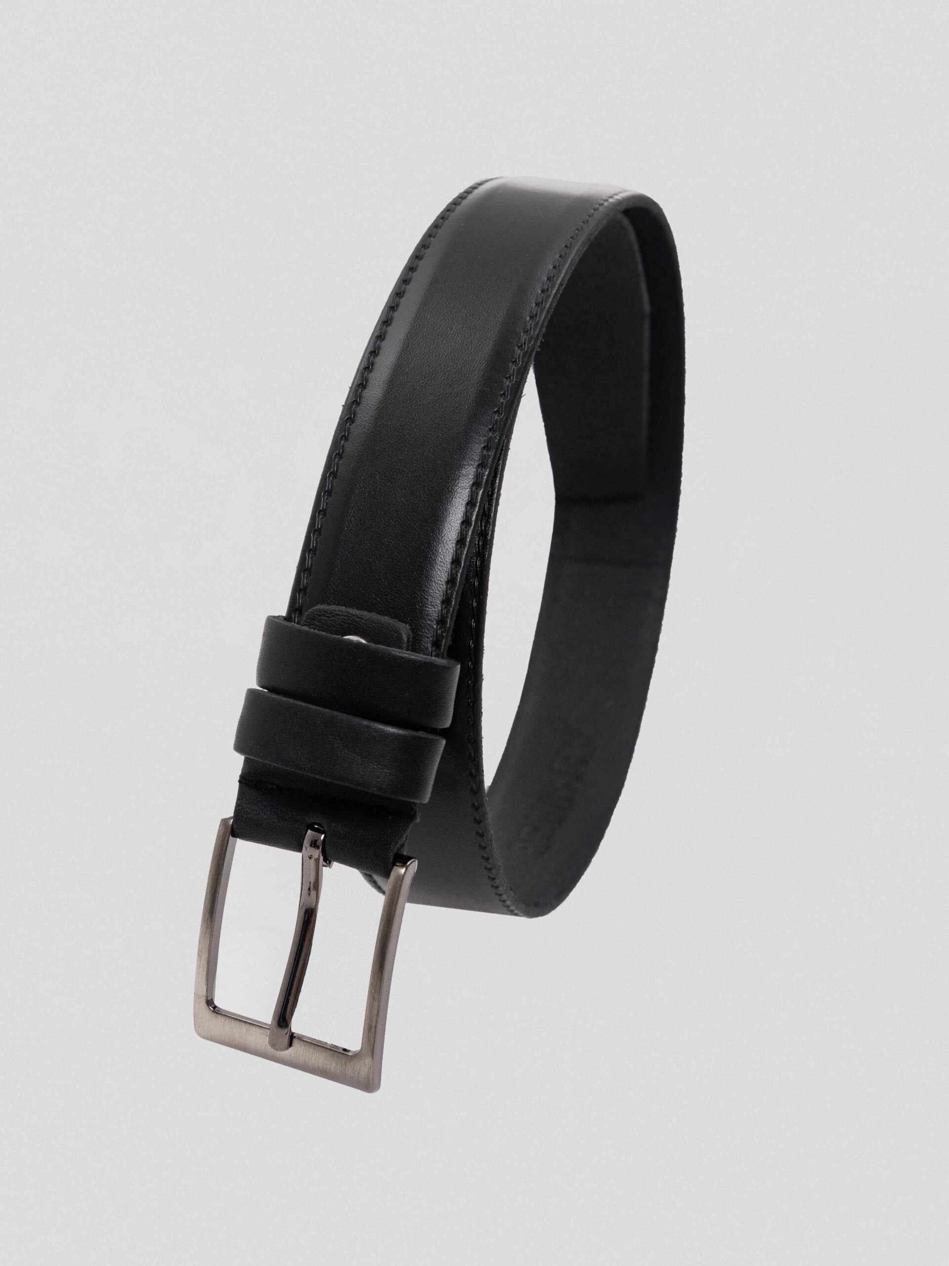 Этот черный ремень с двумя строчками — надёжный аксессуар, сочетающий стиль и практичность.