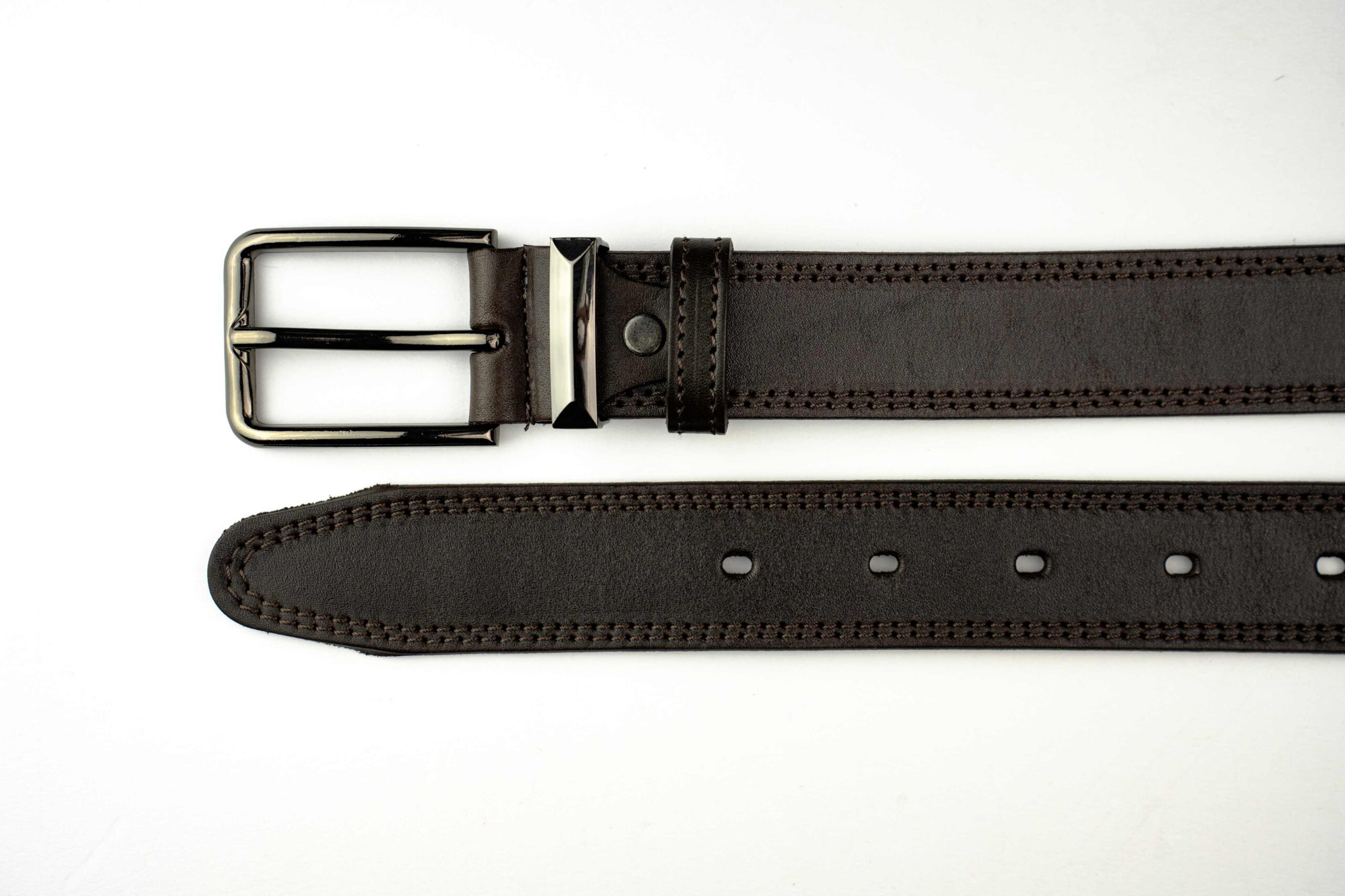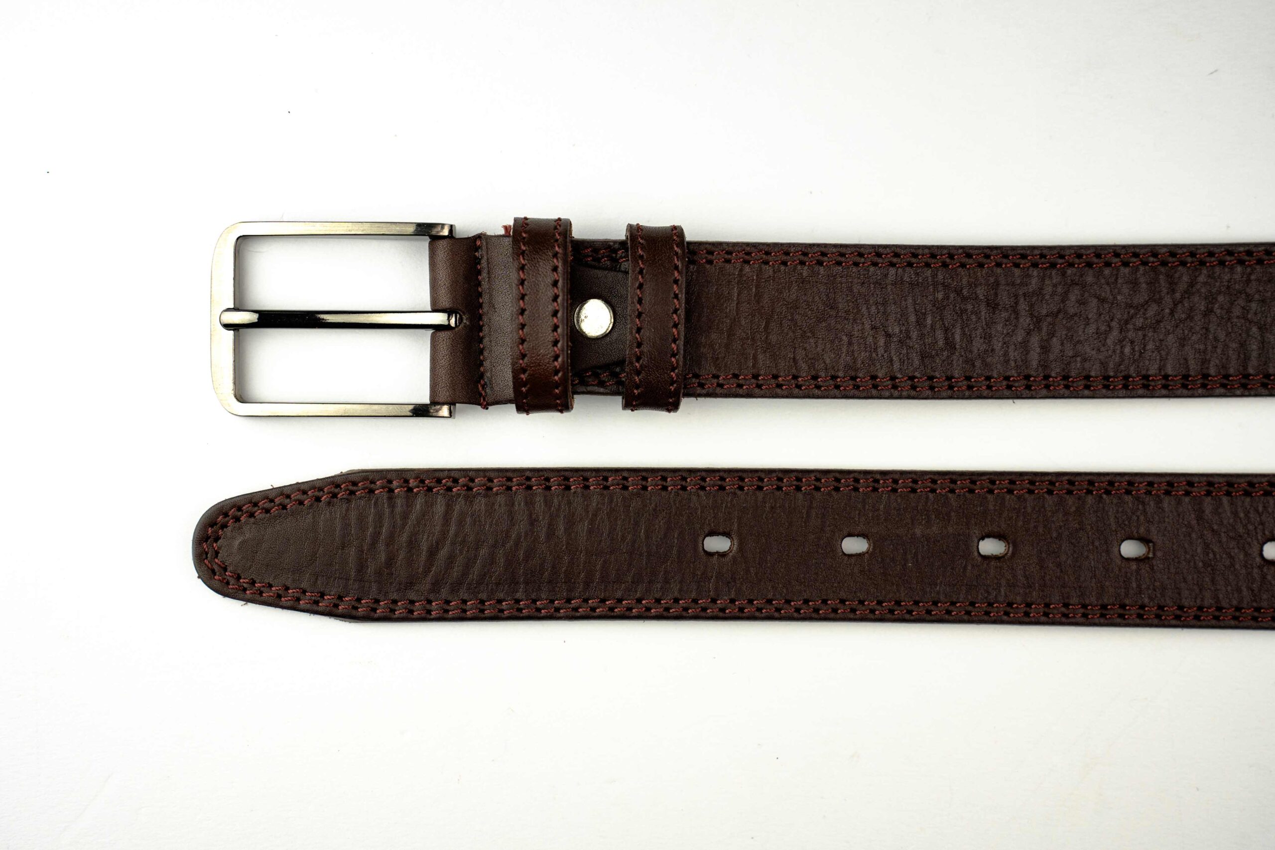 Изготовлены из натуральной кожи растительного дубления толщиной 3–4 мм — это материал, который с годами становится только лучше. Он не мнется, не трескается, не теряет форму даже при ежедневной носке. Такой ремень — не просто аксессуар, а вложение в ваш образ на годы вперед.
