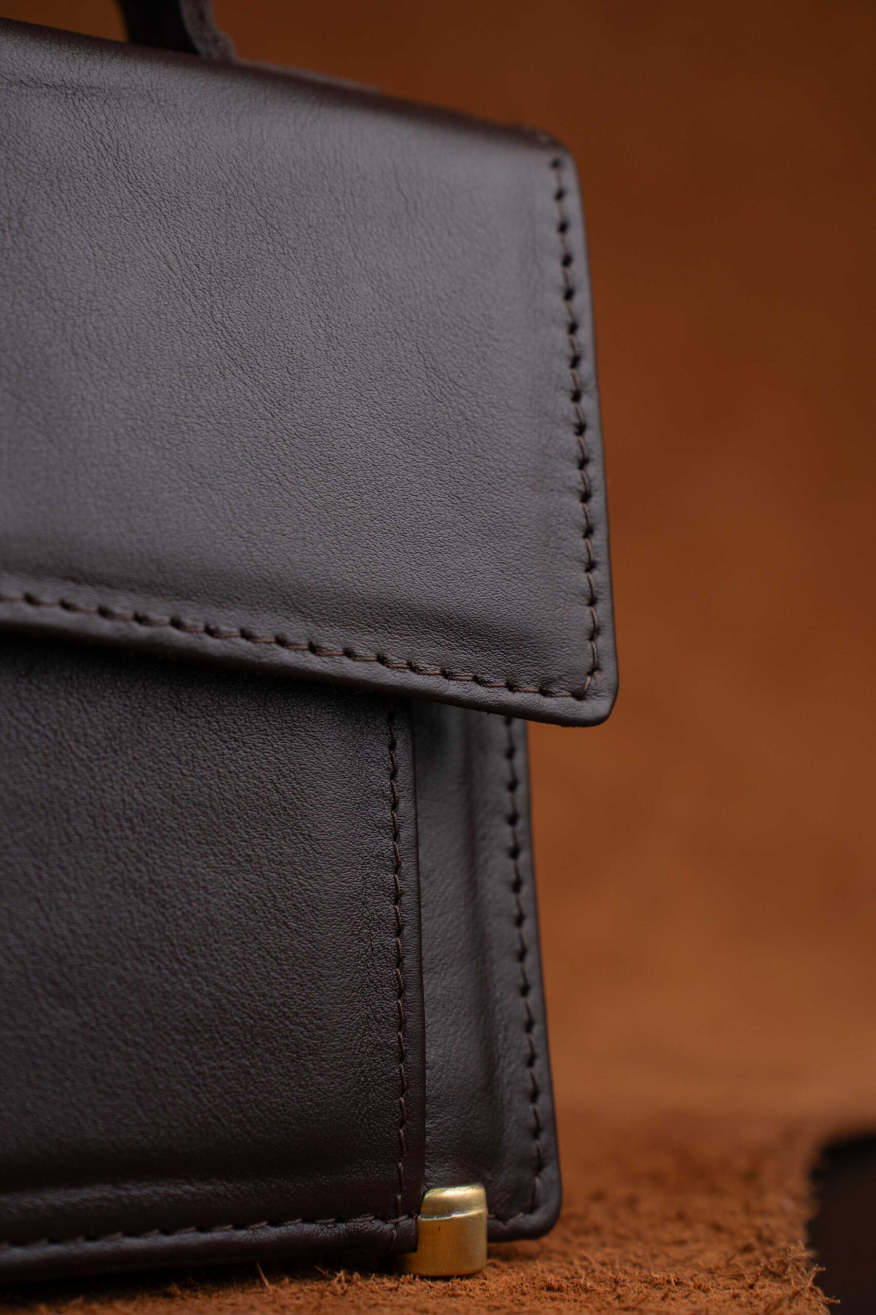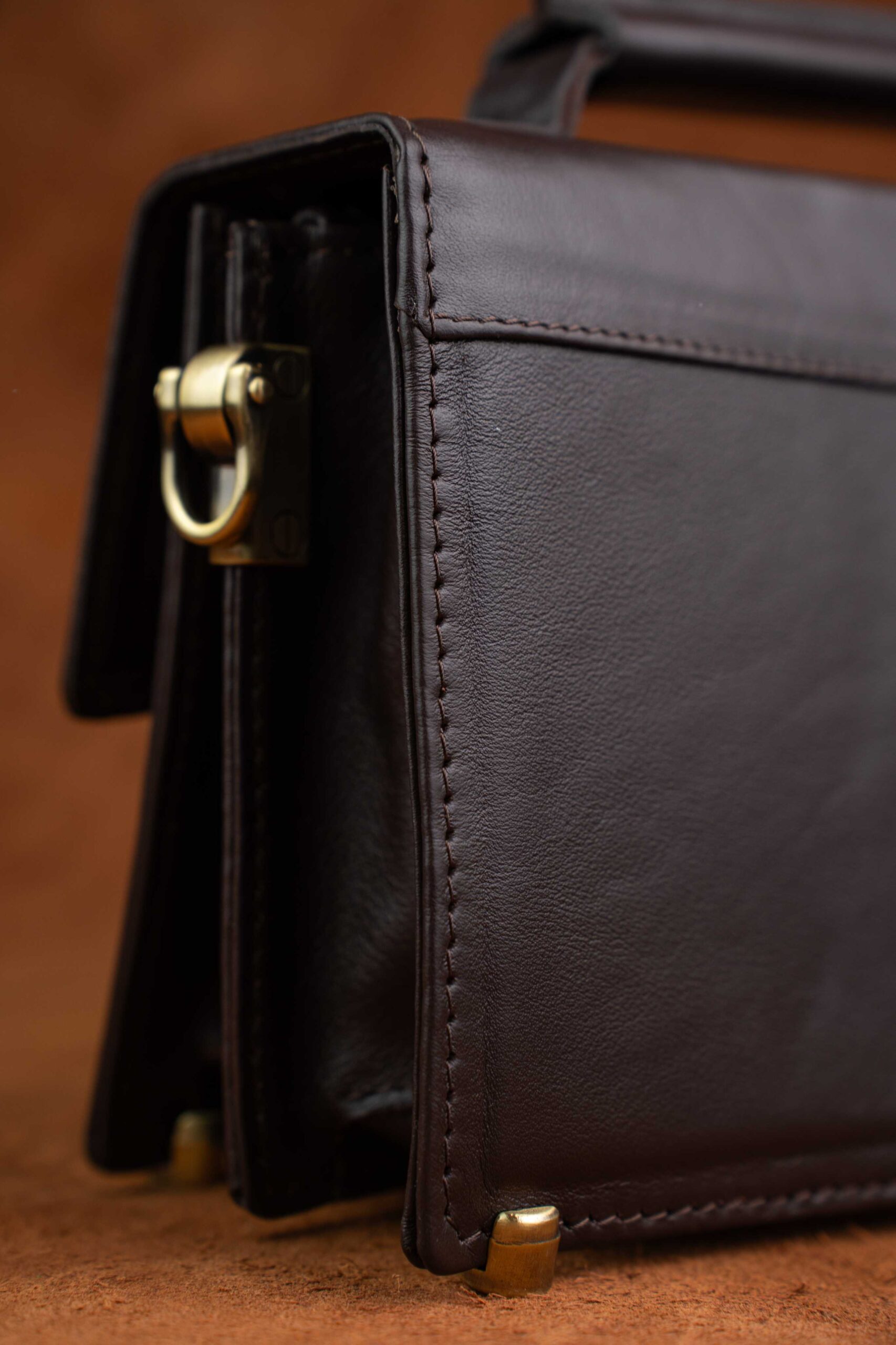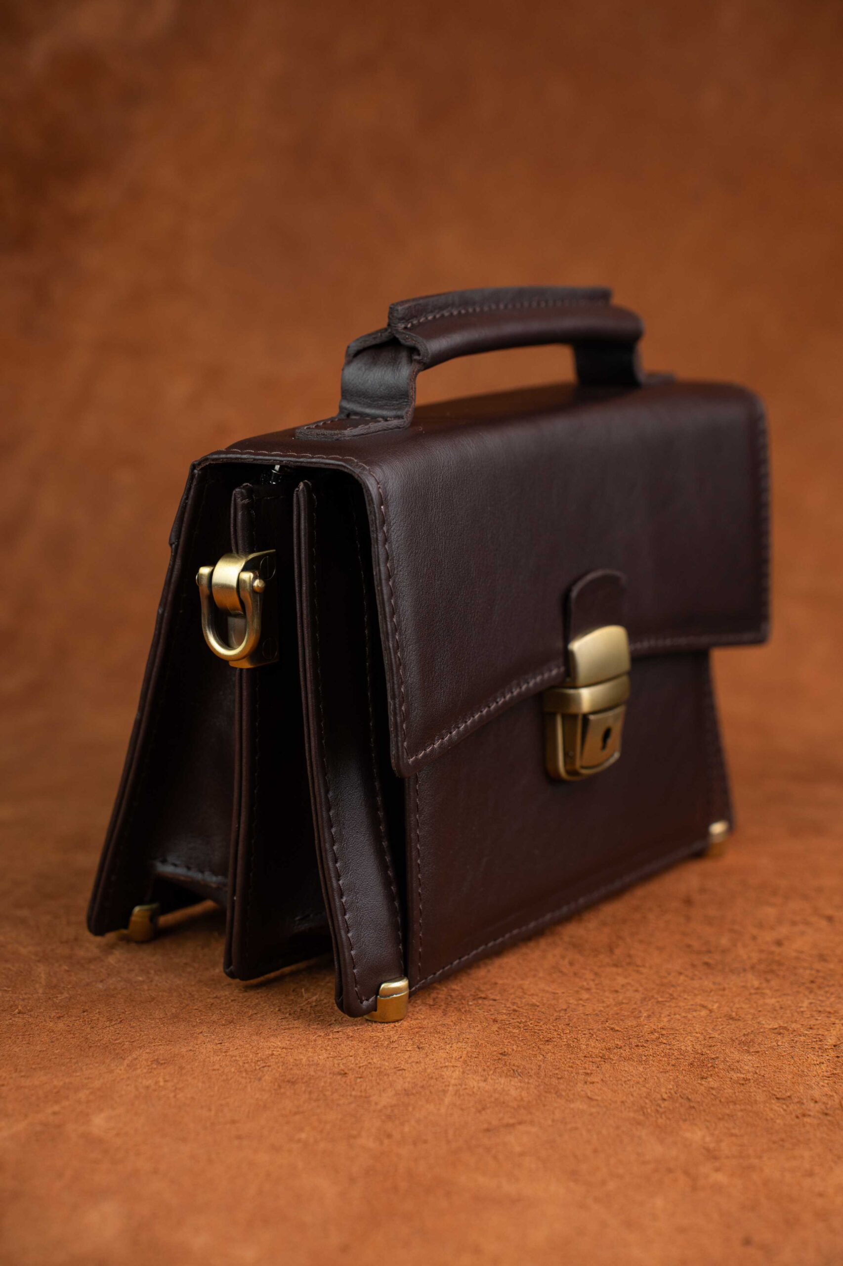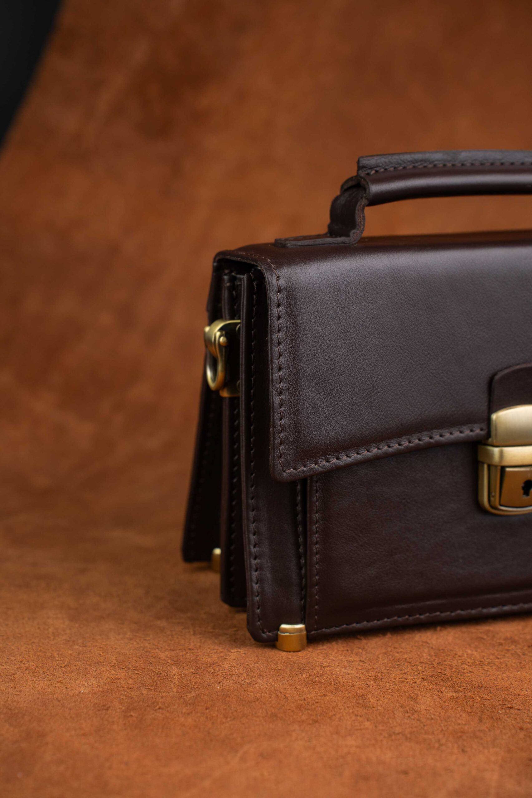 Мужская сумка 816-2-2 — статусный аксессуар из натуральной кожи от белорусского бренда REMBAY. Коричневый цвет, жёсткая форма, металлические акценты и замок с ключевым элементом подчёркивают вкус и уверенность владельца. Идеальна для деловых встреч, подарка и ежедневного использования. Стиль без компромиссов.