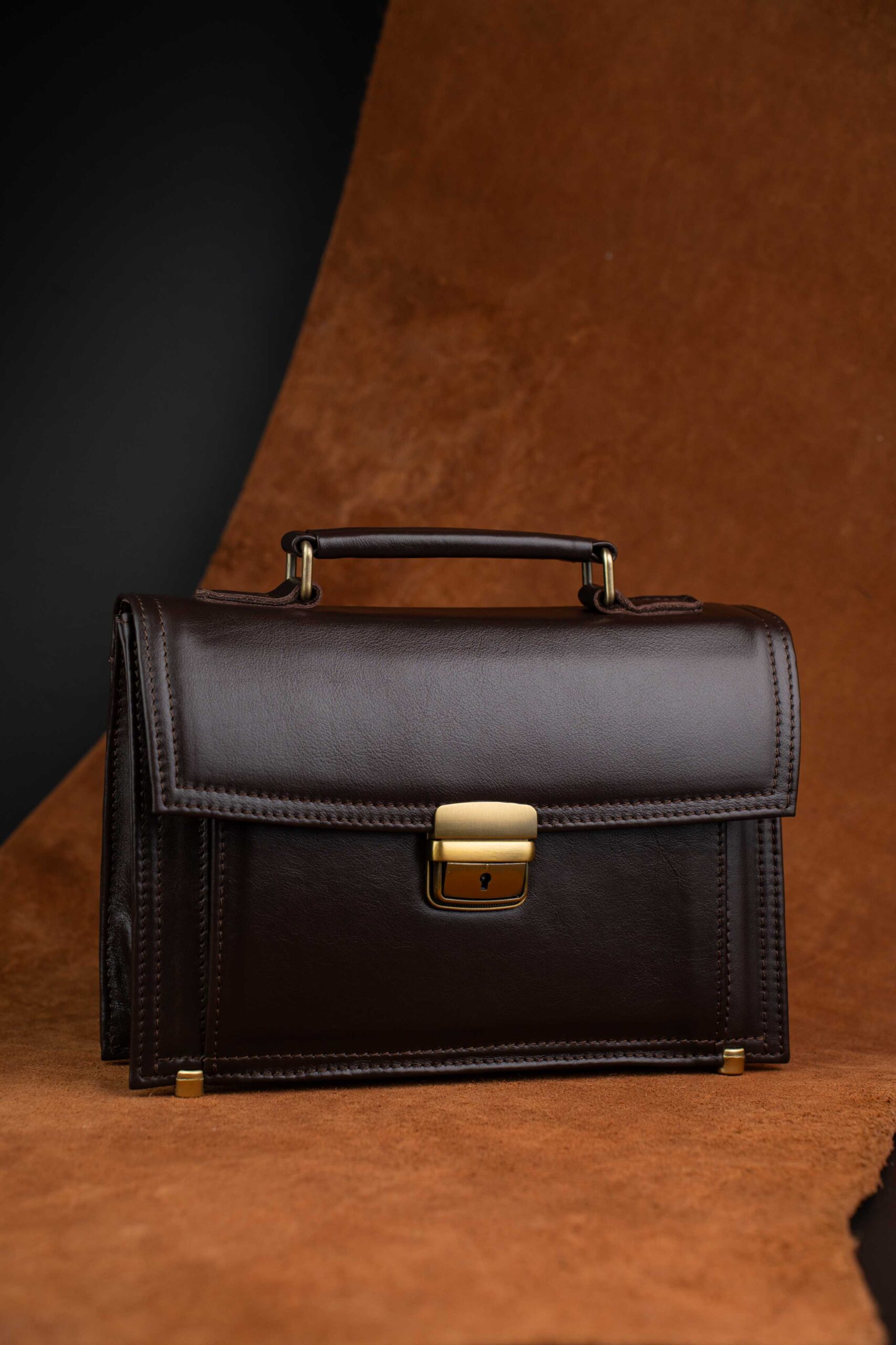 Мужская сумка 817-2-2 — элегантный аксессуар из натуральной кожи от белорусского бренда REMBAY. Строгий коричневый цвет, жёсткая форма, металлические уголки и замок с ключевым элементом подчёркивают уверенность и вкус владельца. Идеальна для деловых встреч, документов и ежедневного использования. Стиль без компромиссов.
