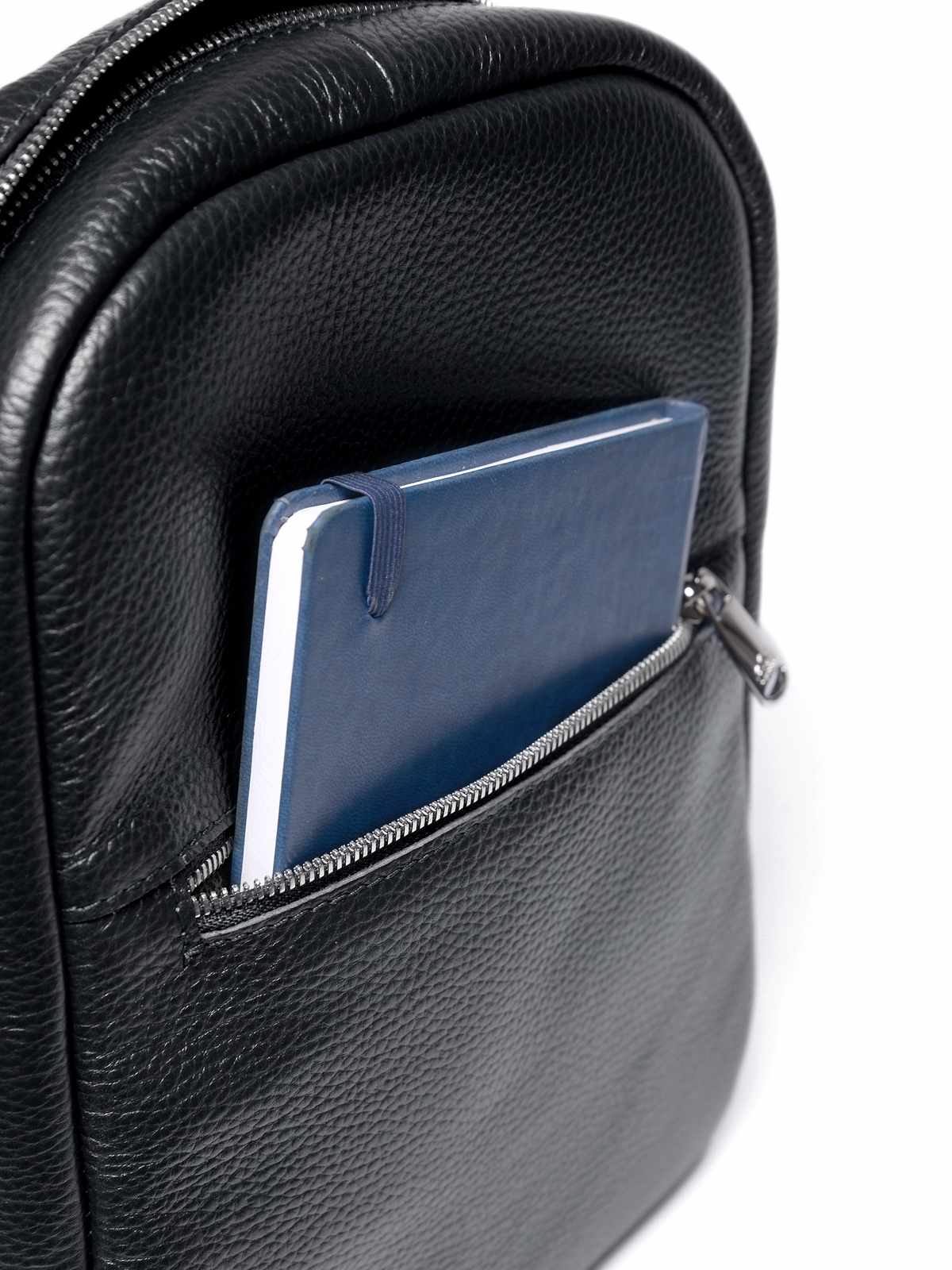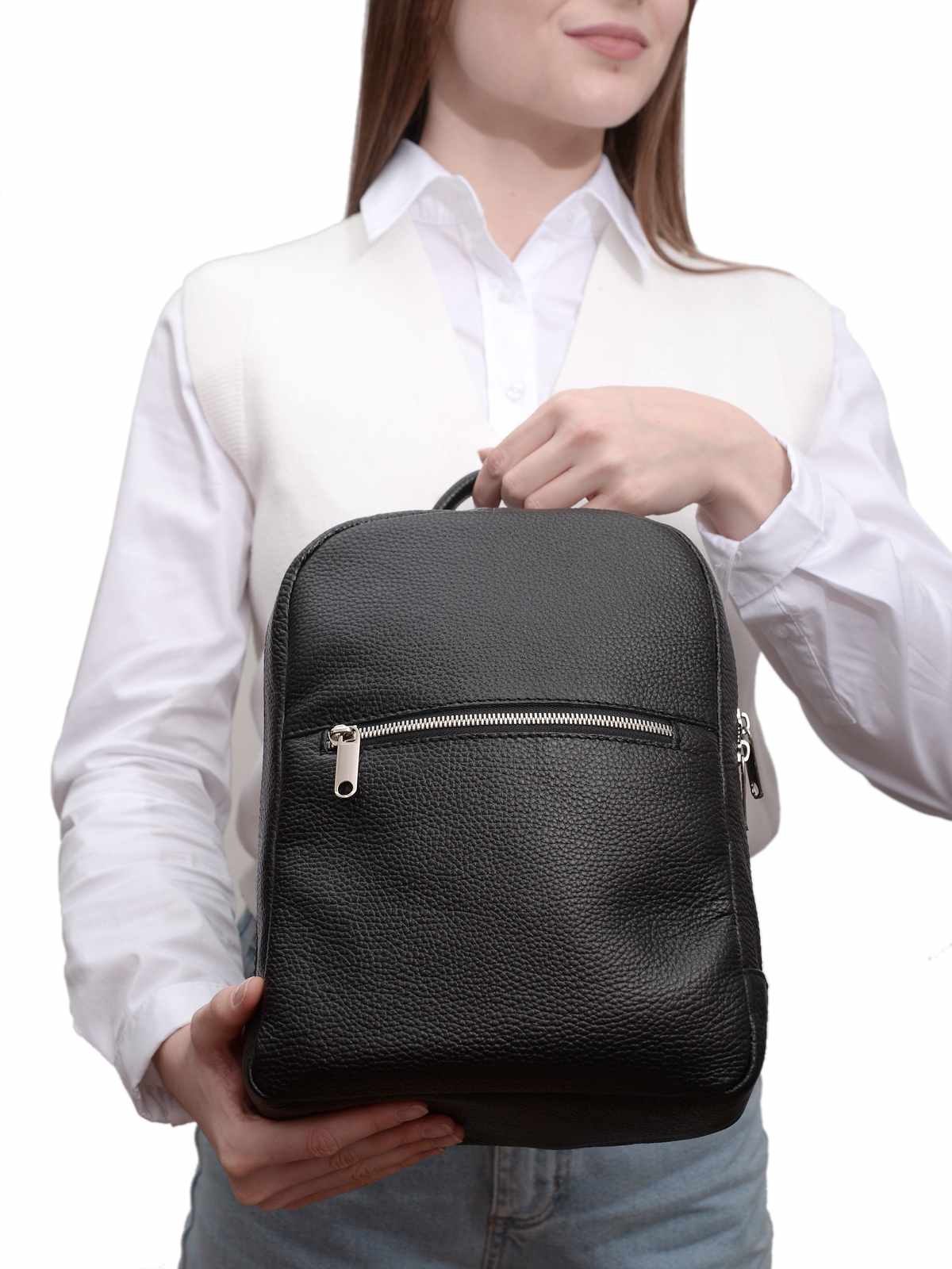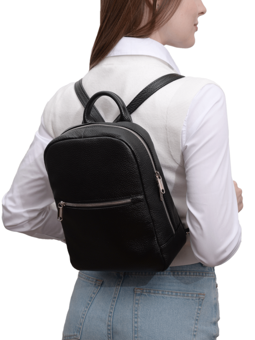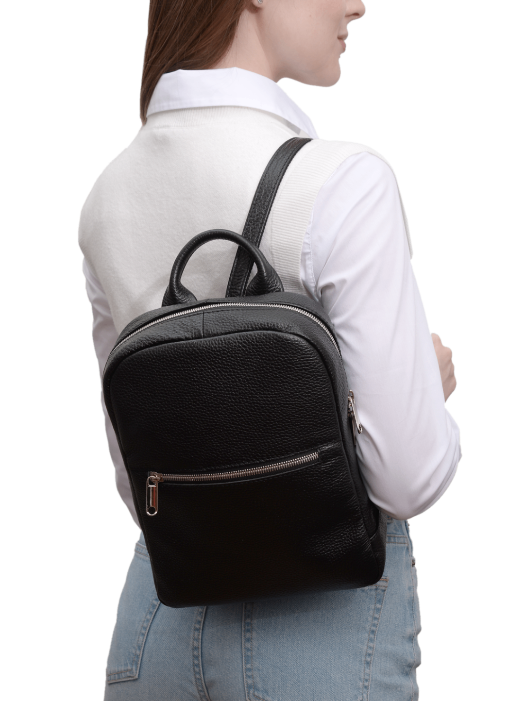Рюкзак изготовлен из качественной кожи с текстурированной поверхностью, оснащён фронтальным карманом на молнии и основным отделением с надёжной застёжкой. Регулируемые лямки обеспечивают комфорт при носке, а лаконичный дизайн легко сочетается с любым образом.