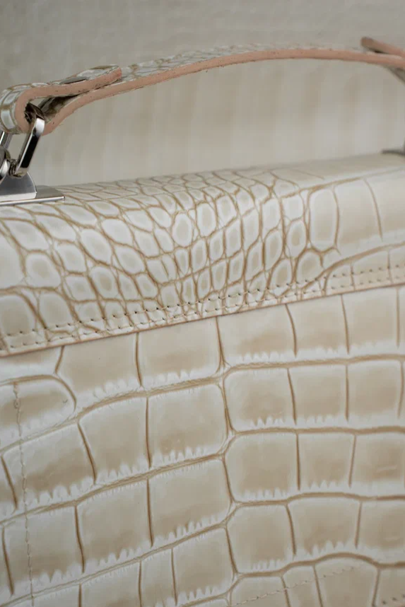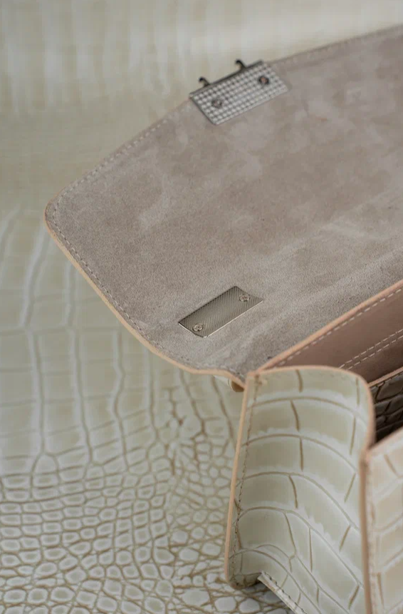 Женская сумка 744-5-2 цвет белый с фактурой под крокодила