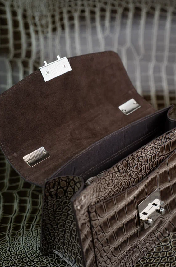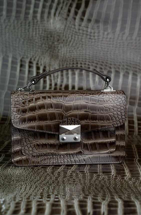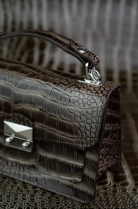 Женская сумка 744-5-2 цвет темно-коричневый, фактура «крокодил»