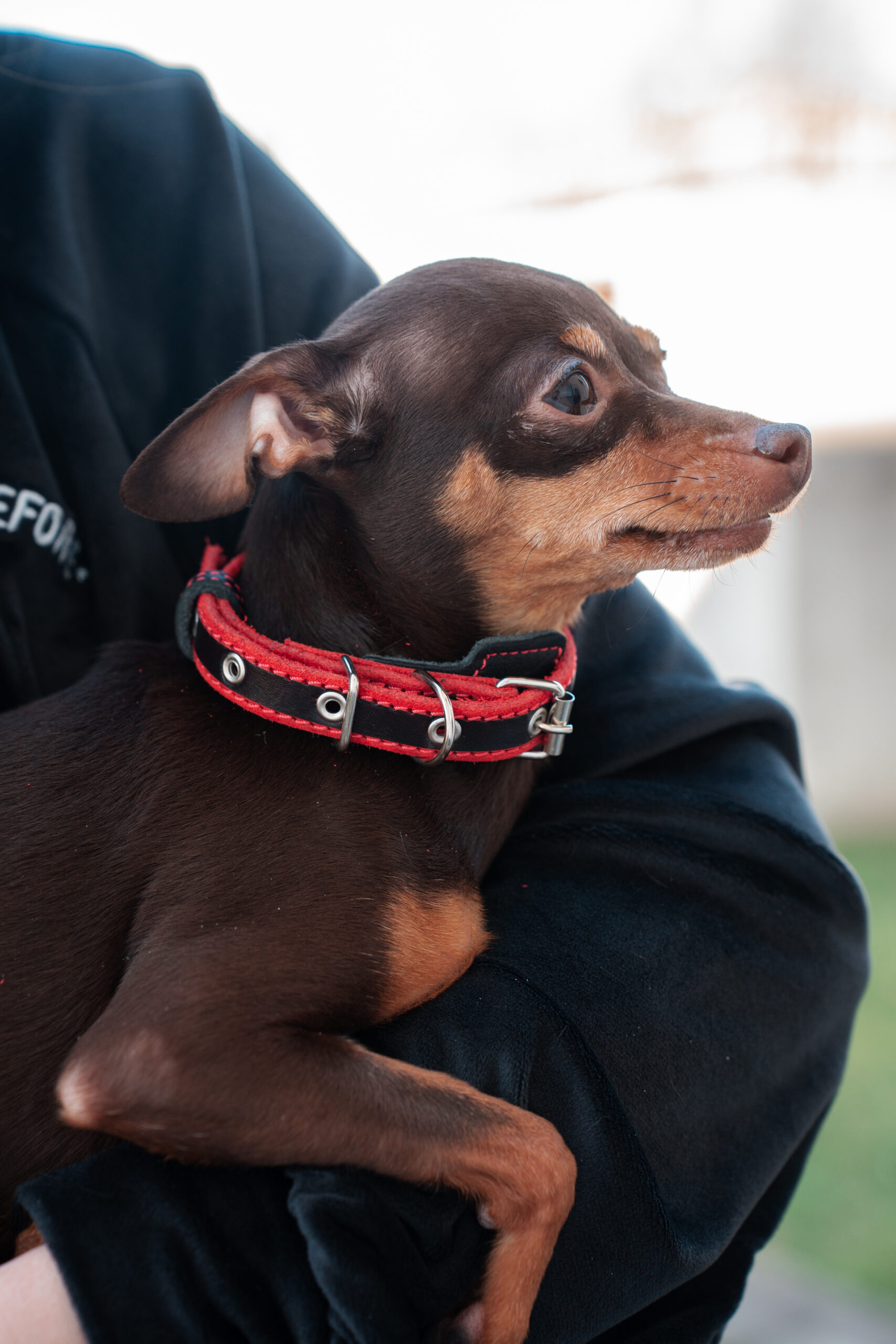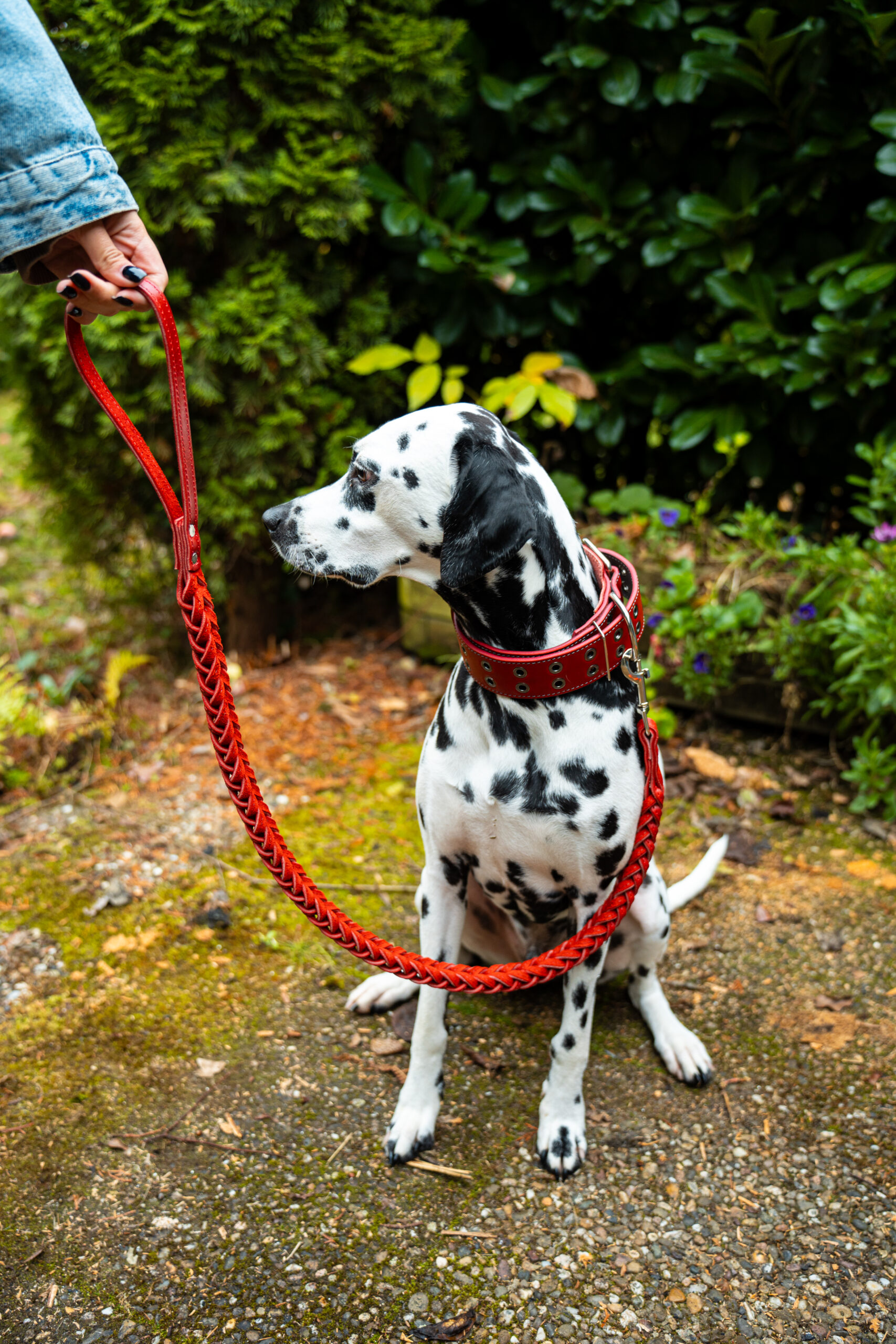 Поводок из натуральной кожи 25 мм двойное плетение, 1 строчка, цвет красный, красная нить 33,50 Br