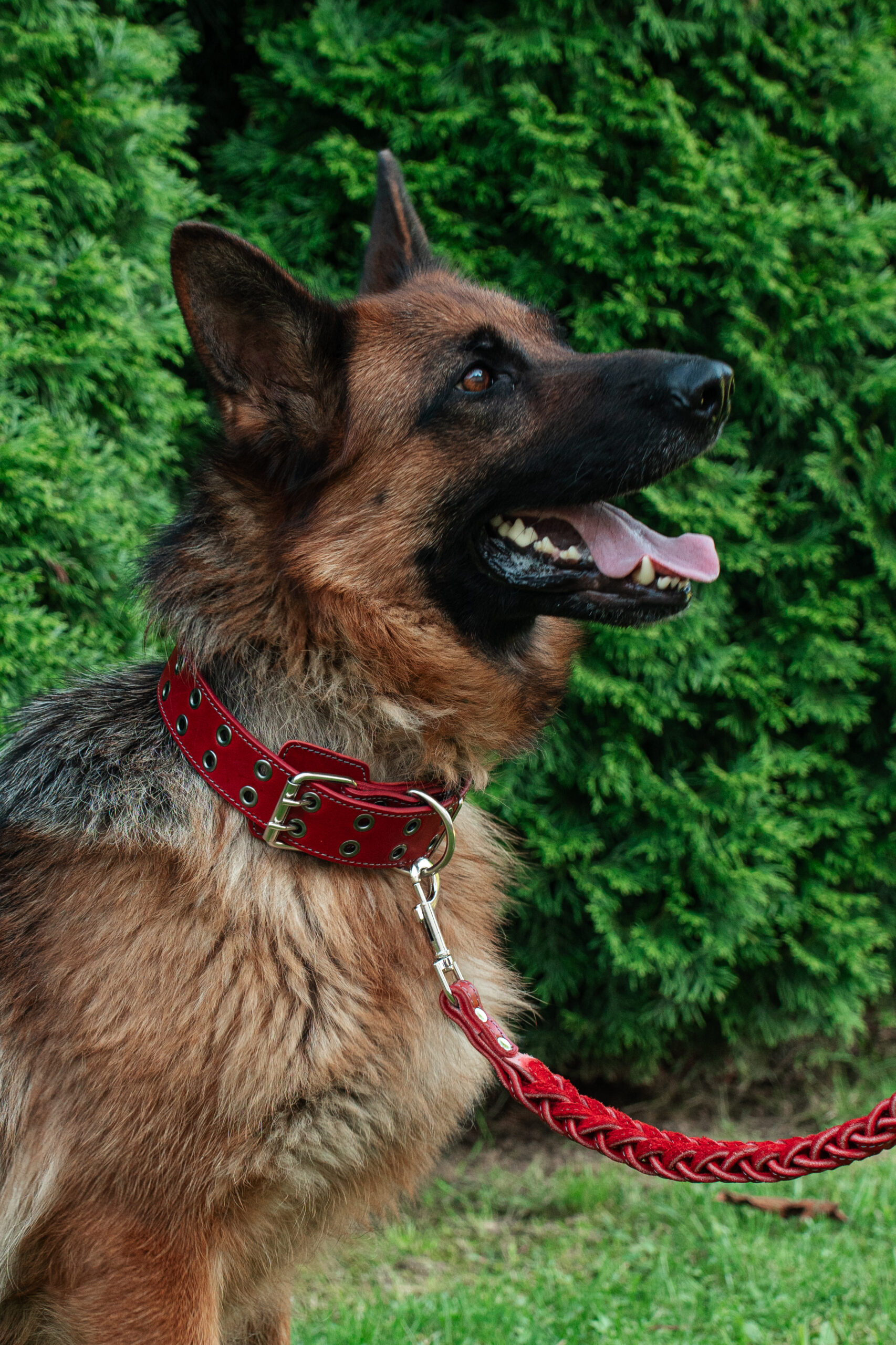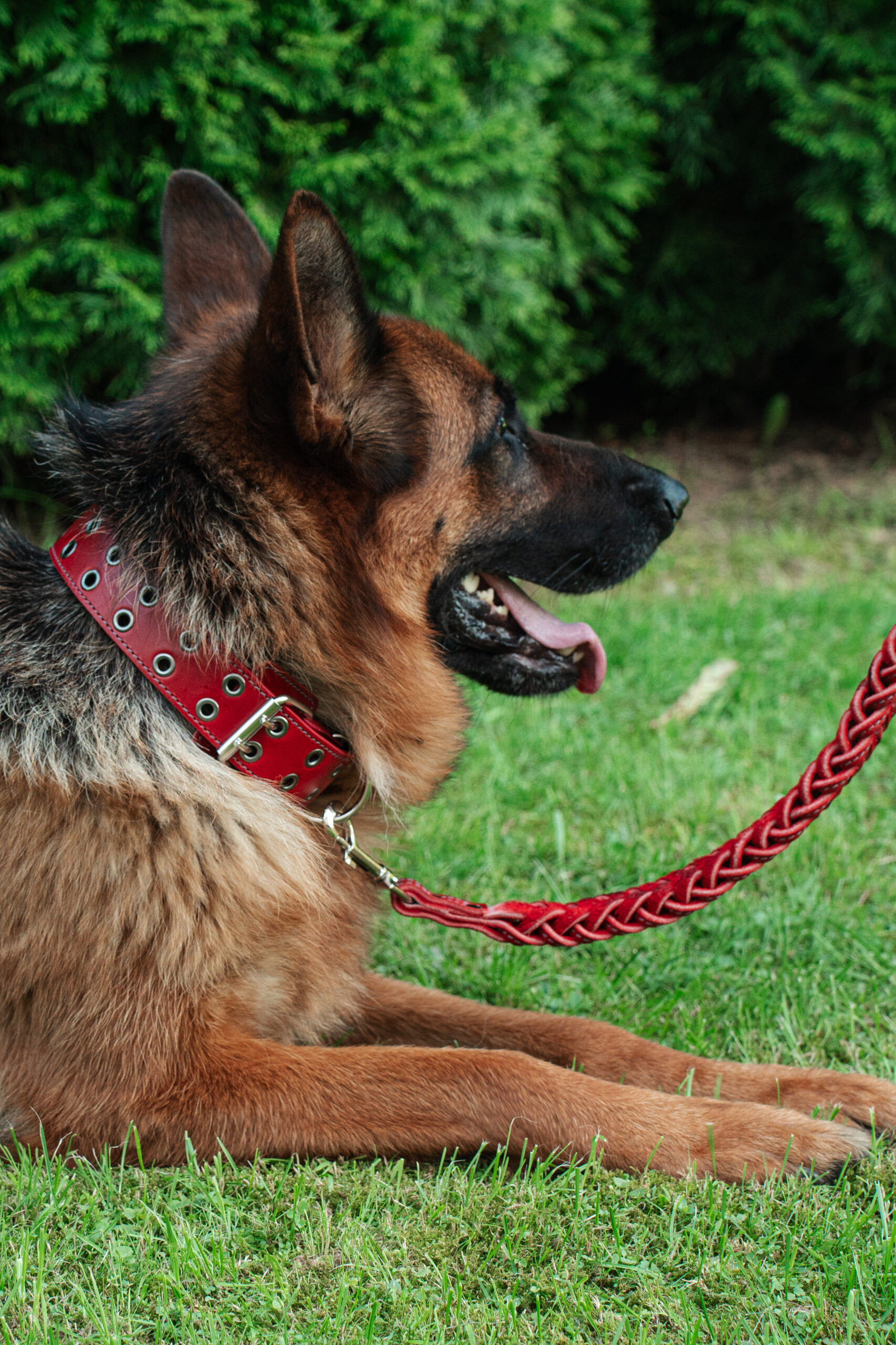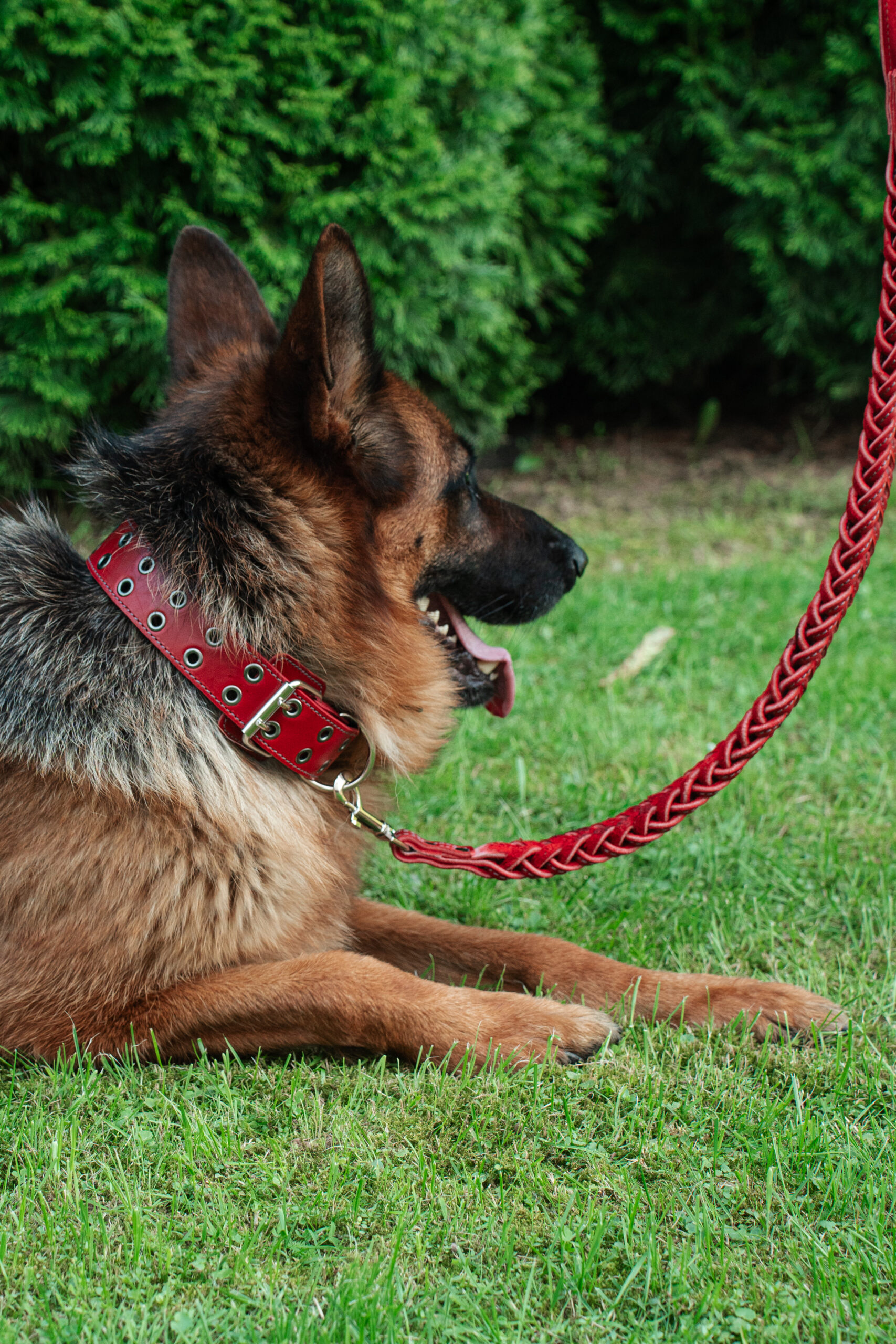 Поводок из натуральной кожи 25 мм двойное плетение, 1 строчка, цвет красный, красная нить