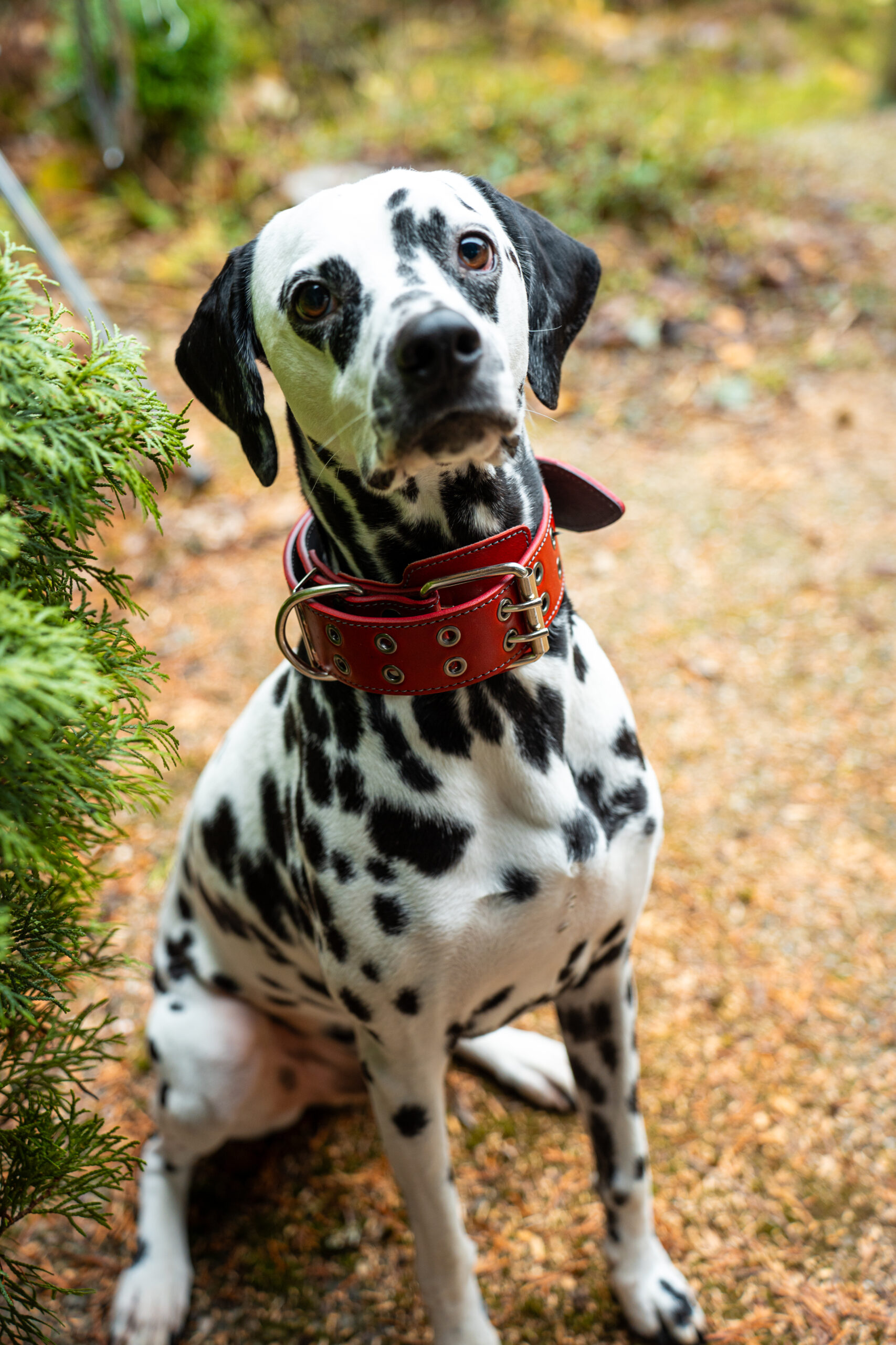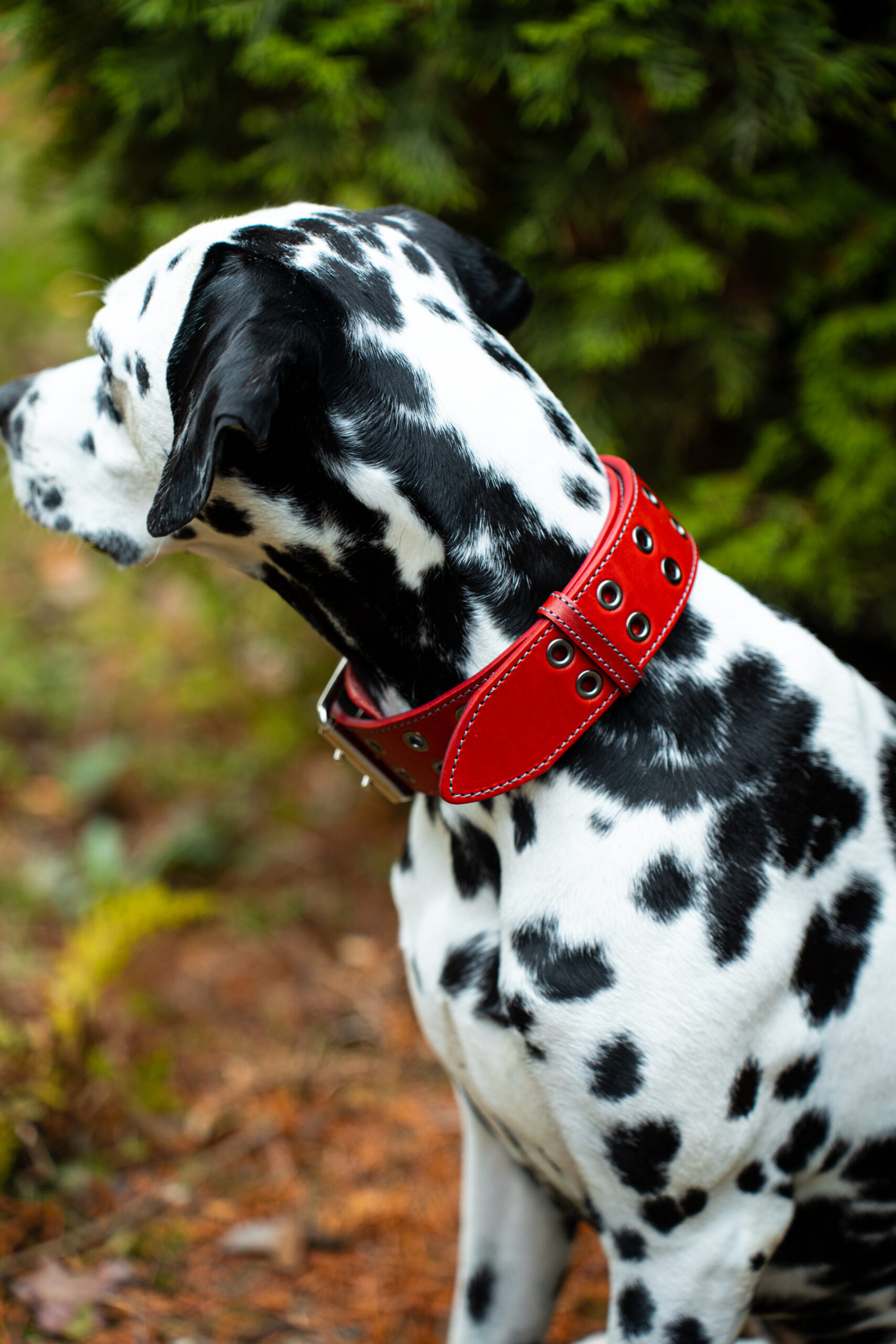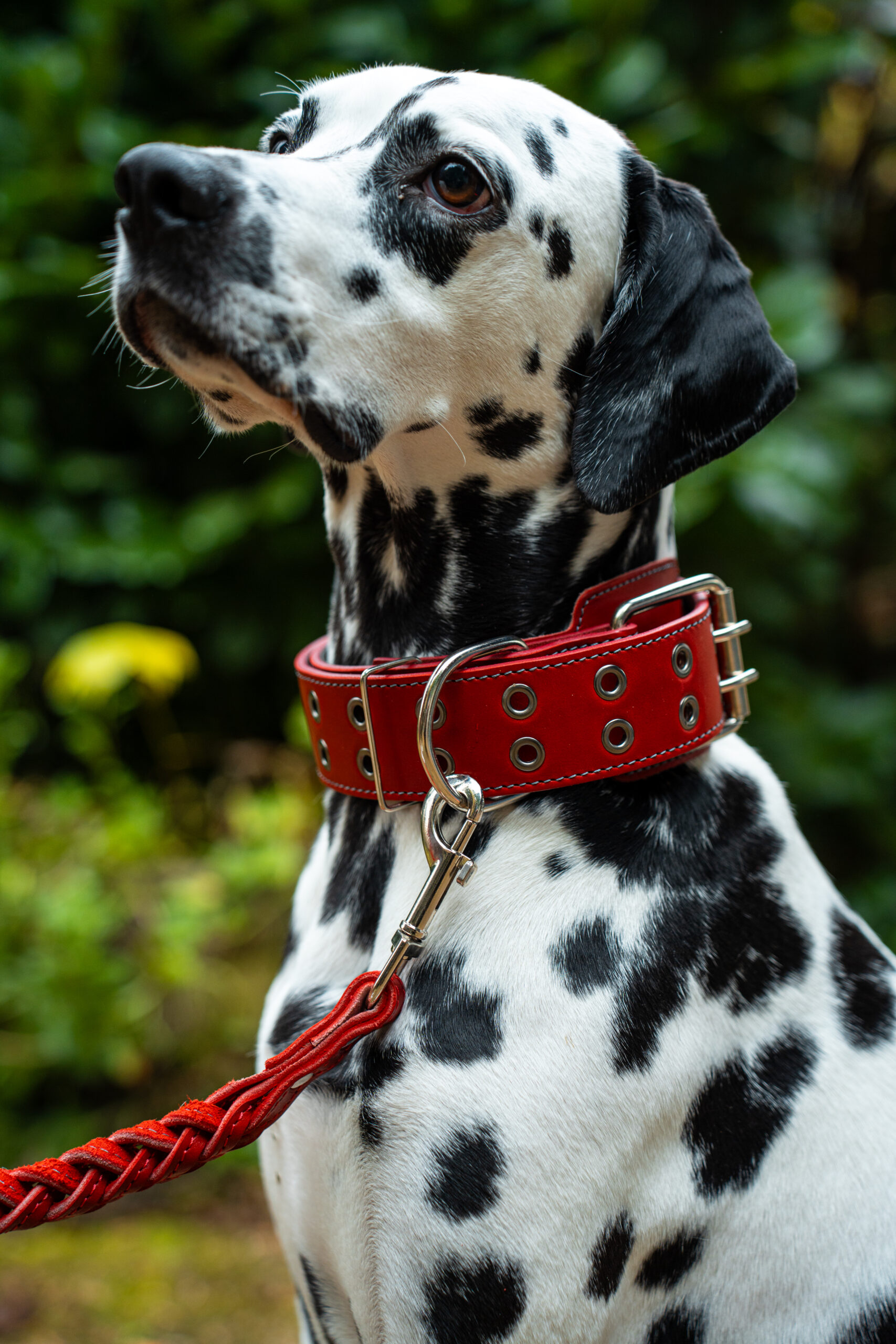 Ошейник из натуральной кожи 20мм с подпряжником красный, красная нить