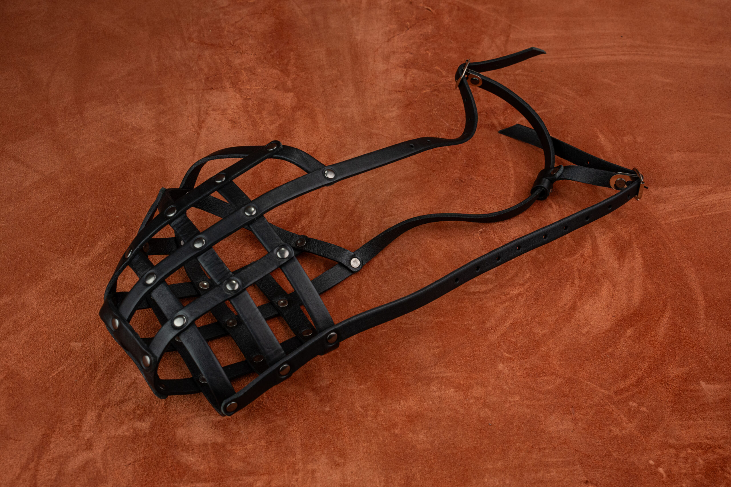 Намордник из натуральной кожи (тройной) — надёжный аксессуар для безопасного выгула и дрессировки.