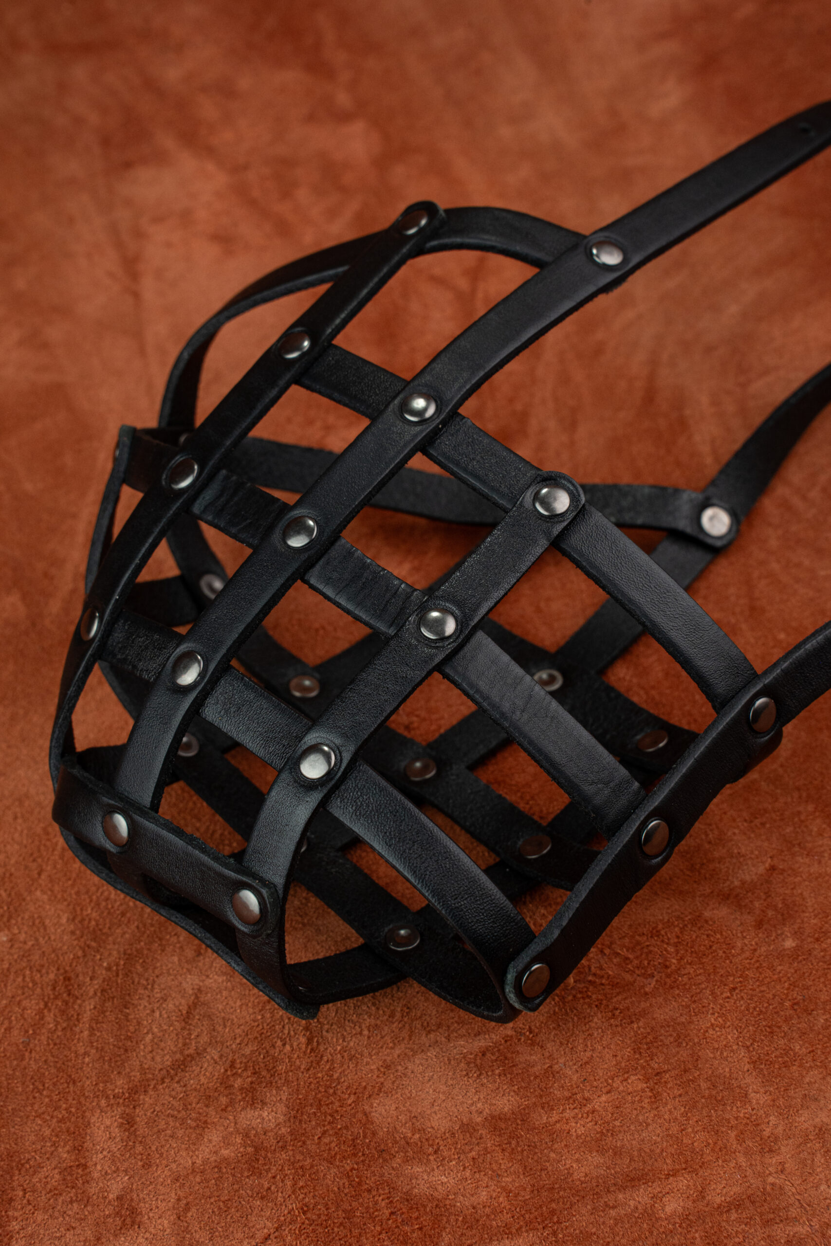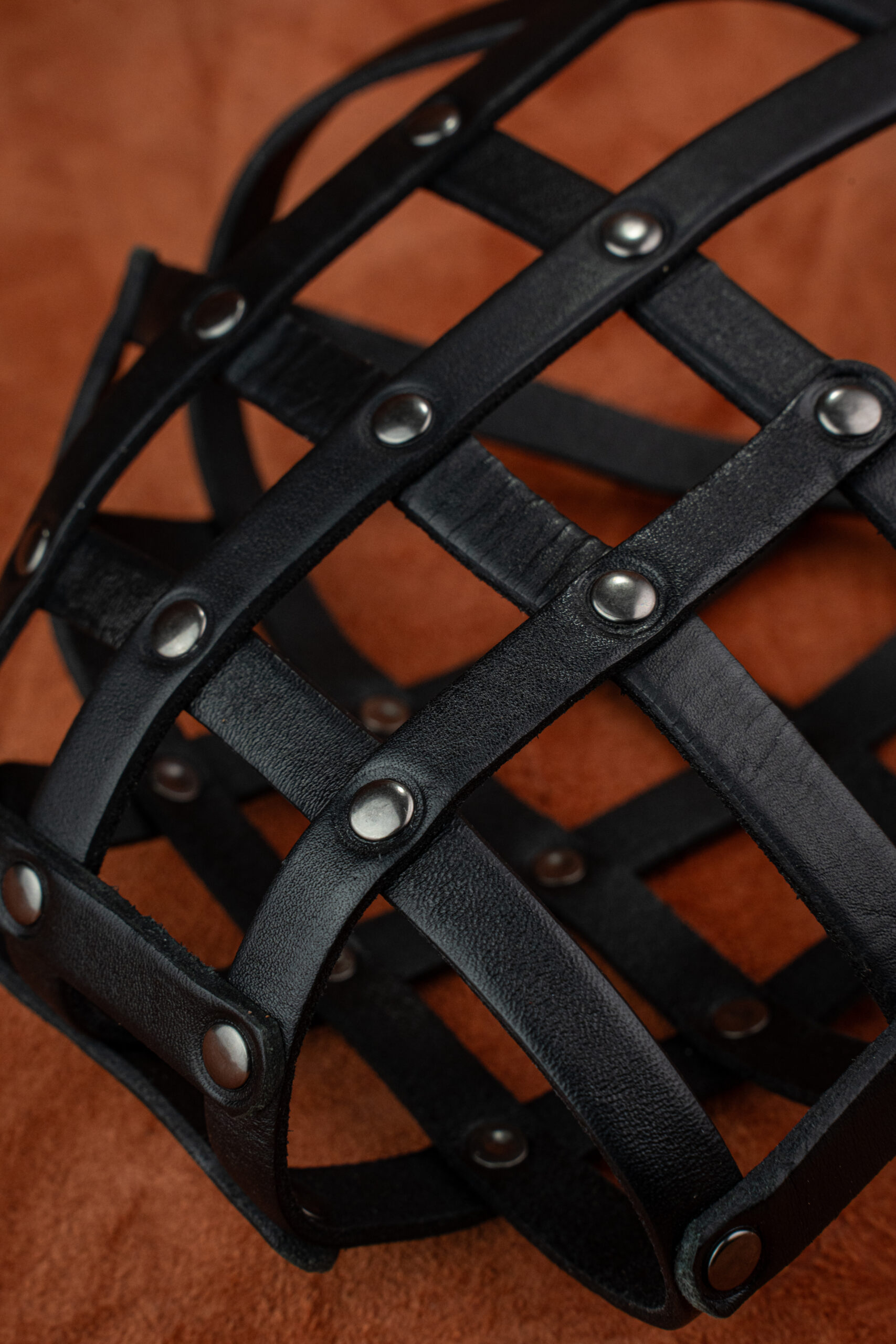 Намордник из натуральной кожи — тройной, глубина 11, объём 25, гладкий, цвет чёрный.