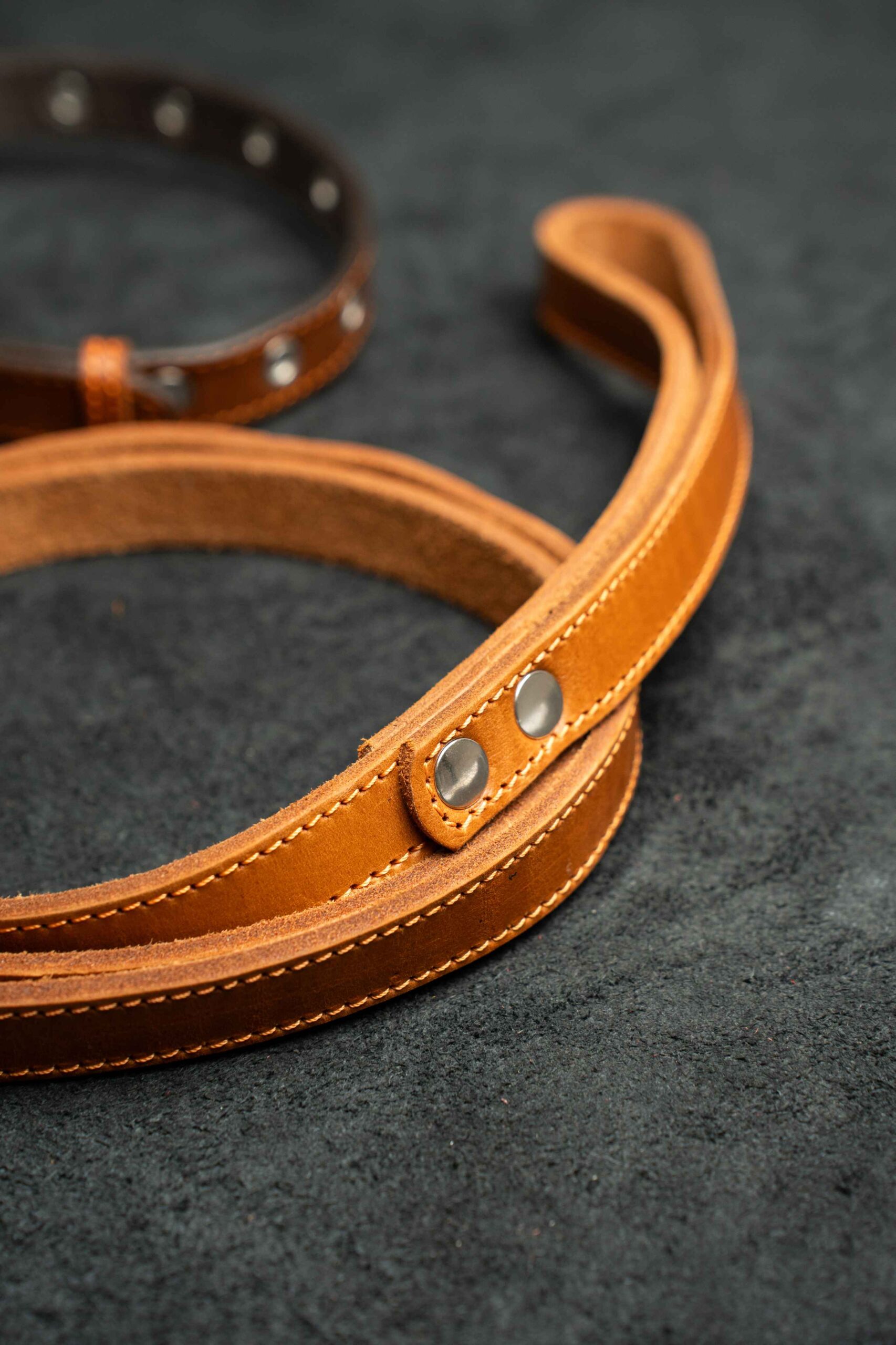 Поводок из натуральной кожи 12мм прямой, 1 строчка цвет светло-коричневый, рыжая нить