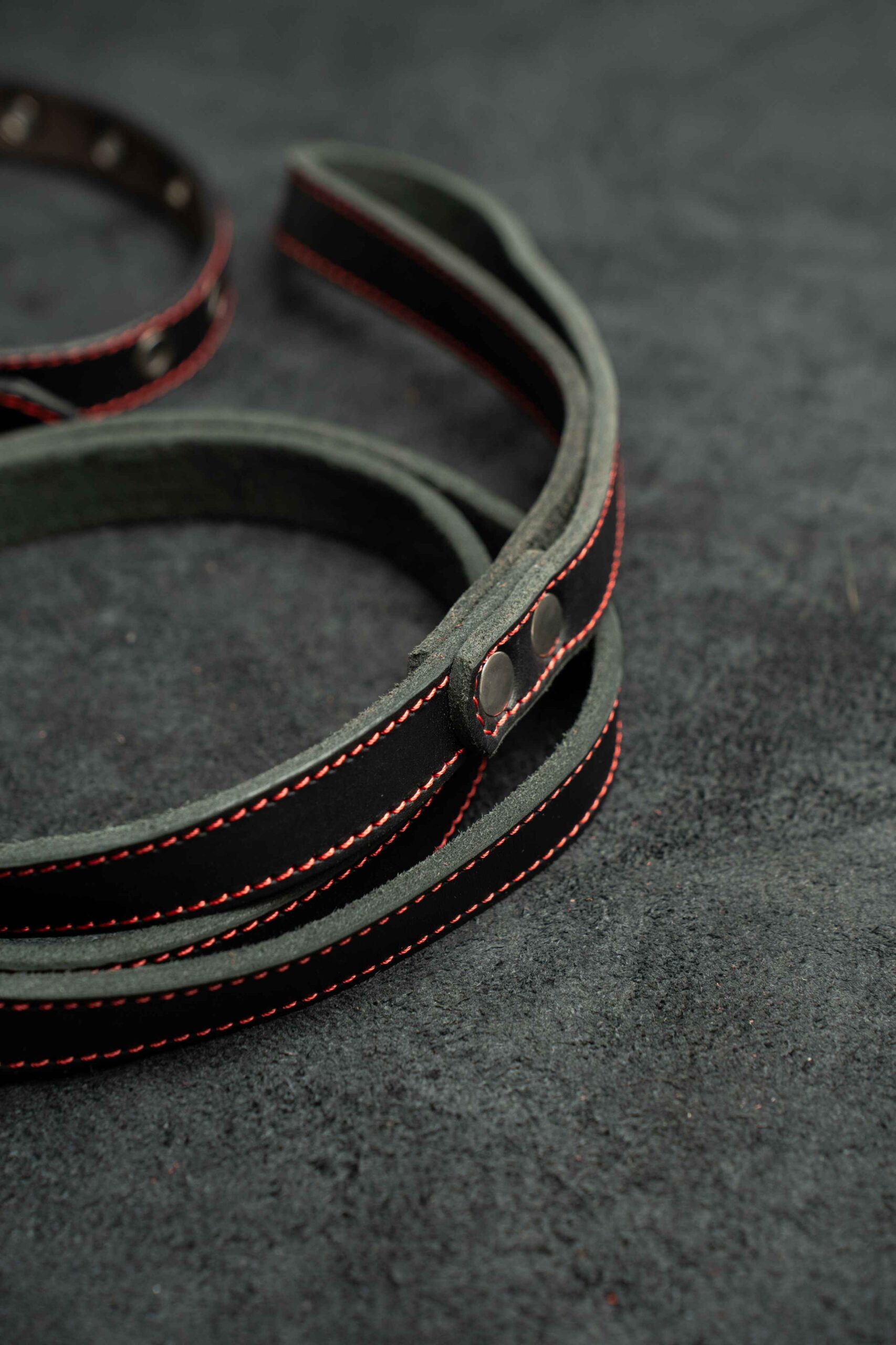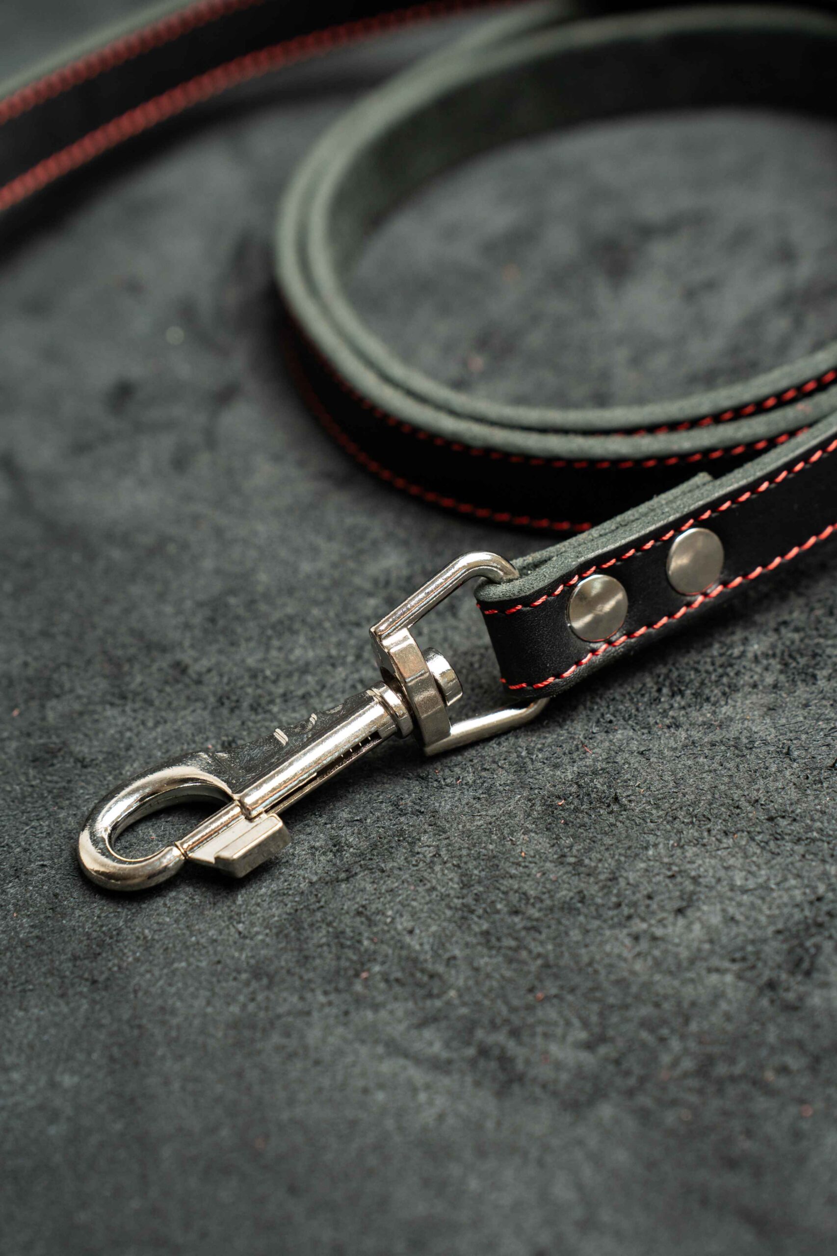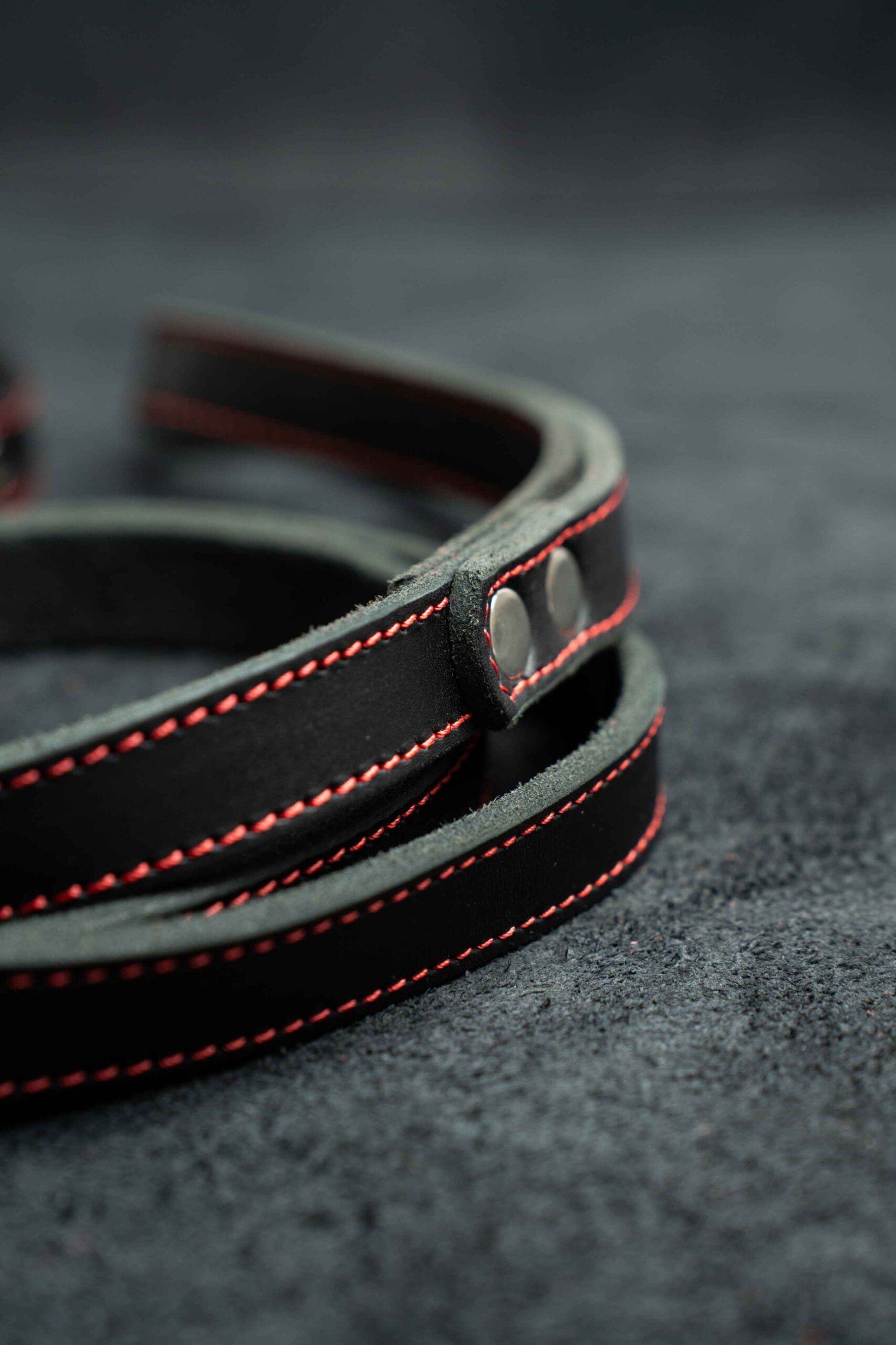 Поводок из натуральной кожи 15 мм прямой, 1 строчка цвет черный, красная нить