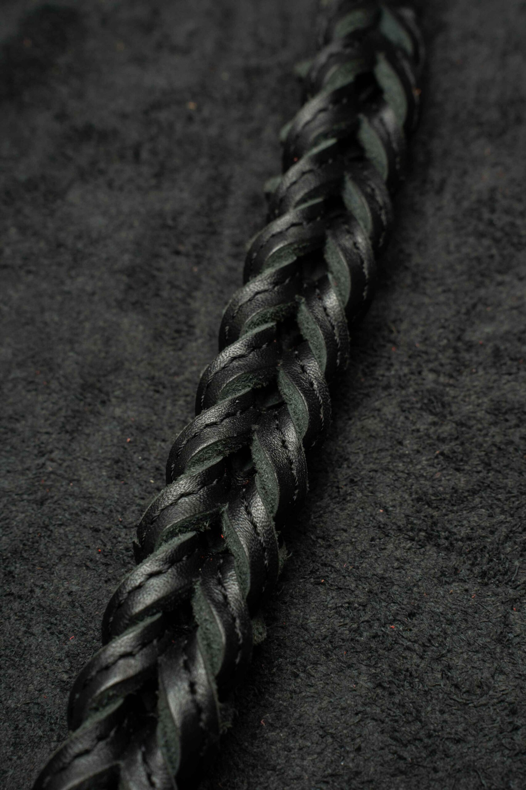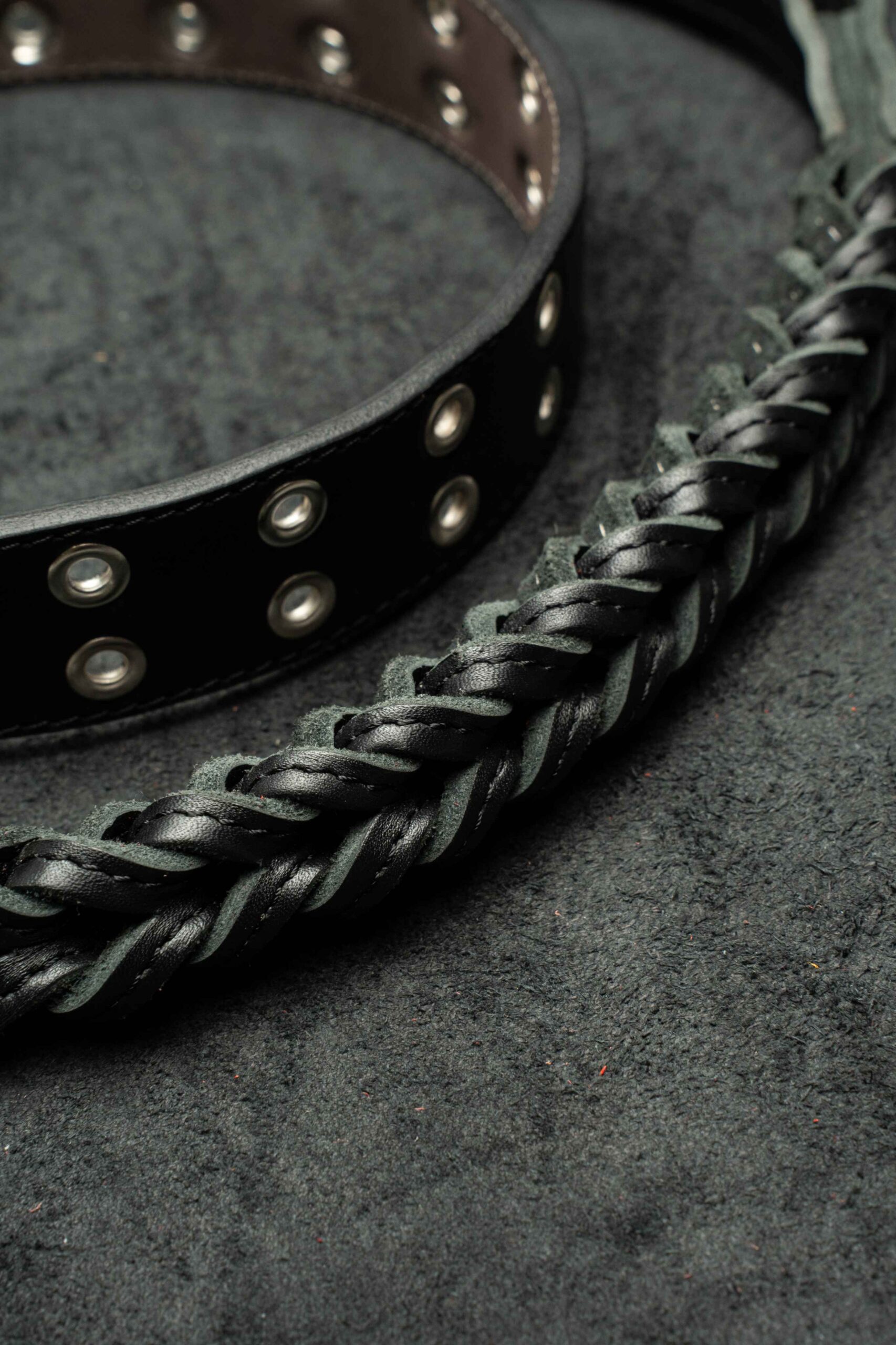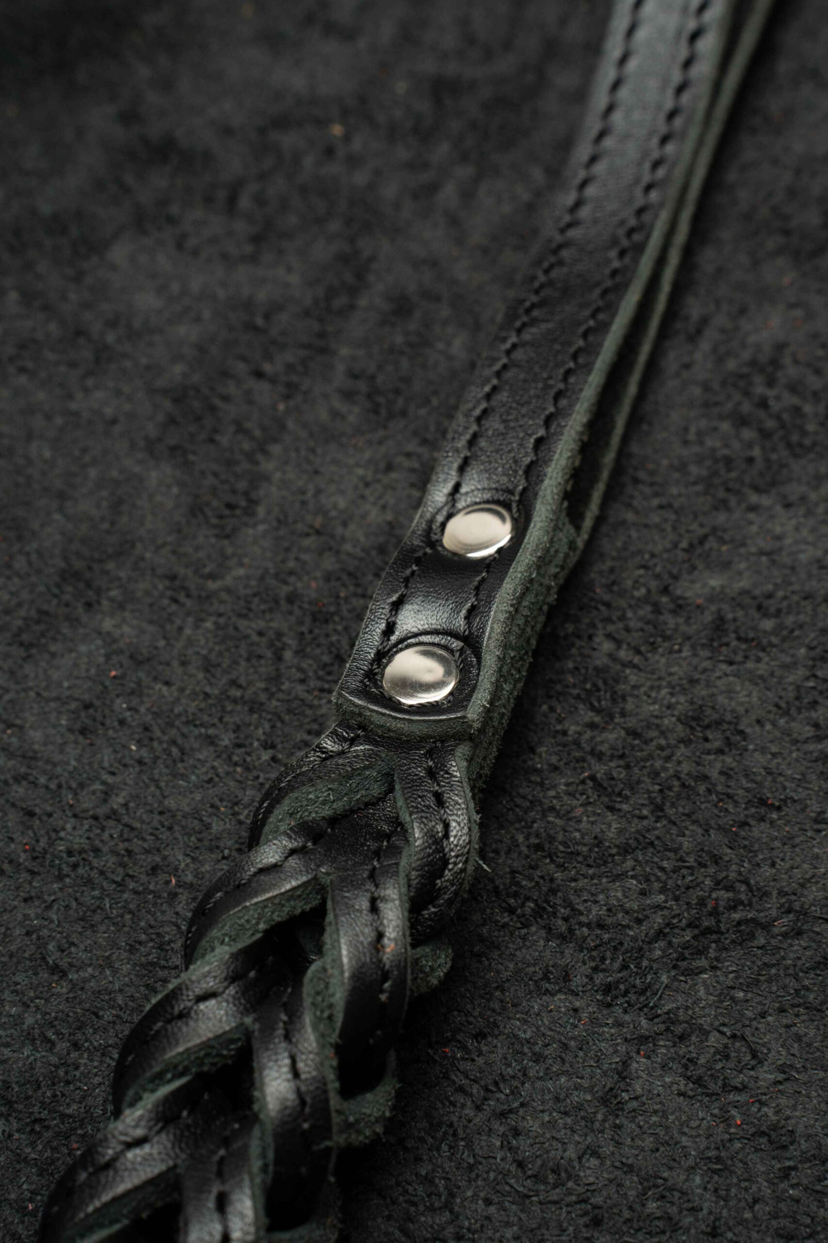 Поводок из натуральной кожи 25 мм двойное плетение, 1 строчка, цвет черный, черная нить